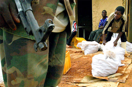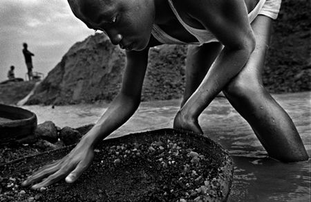 A boy works in a diamond mine under the control of the Revolutionary United Front (RUF) rebels in Sierra Leone, December 2001. (Jan Dago/Magnum Photos) |